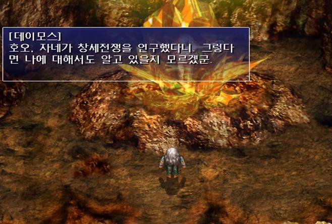 시라노 번스타인이 인페르노에서 만난 데이모스는 암흑신의 한 사람으로, 13암흑신의 수장인 '혼돈의 데이모스'가 그의 풀네임입니다. 마신교를 섬기는 게이시르 제국의 수호신이었죠. 데이모스는 일찍이 '창세기전 2'에서 봉인지를 찾아온 흑태자에게 궁극 그리마의 힘을 전수해 준 존재이기도 했습니다.