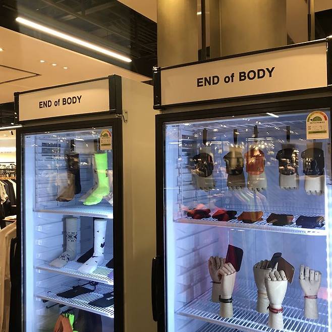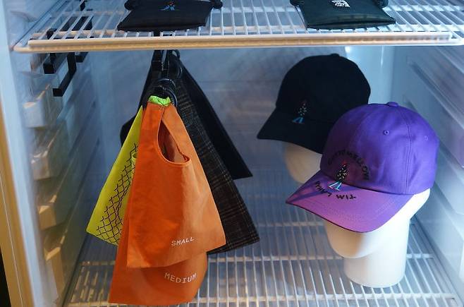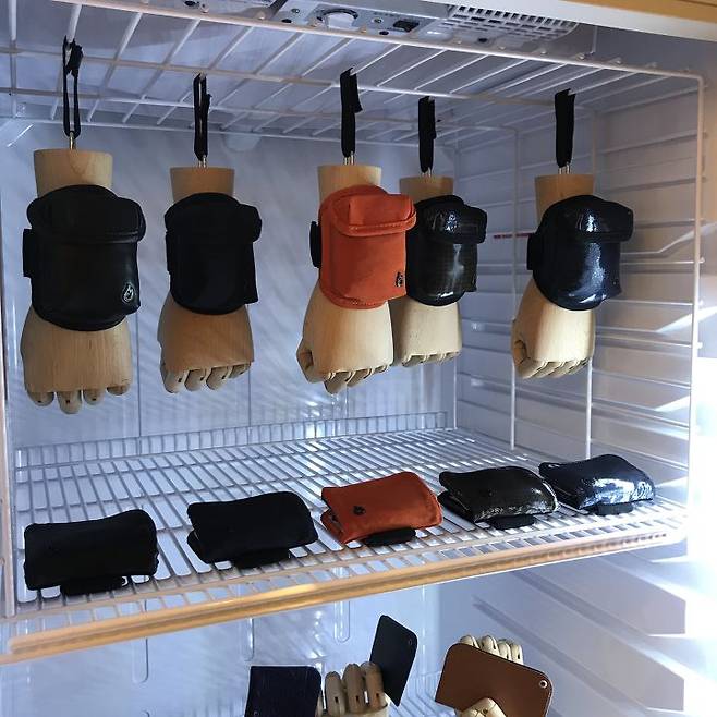 악세사리들을 음료수용 냉장고에 전시한 발상은