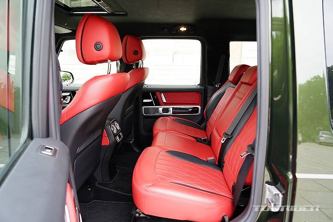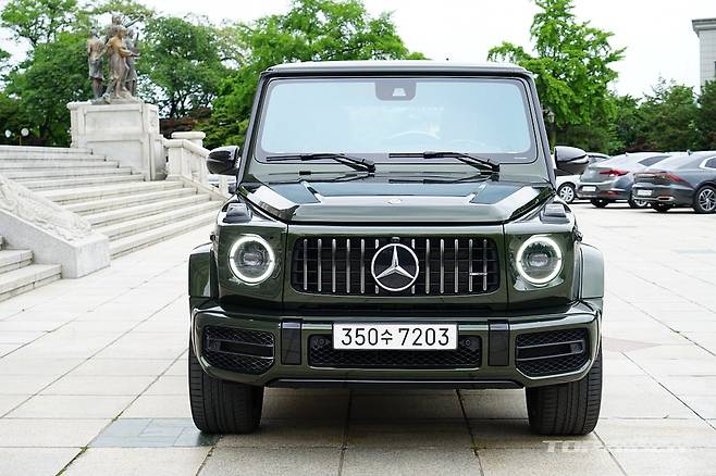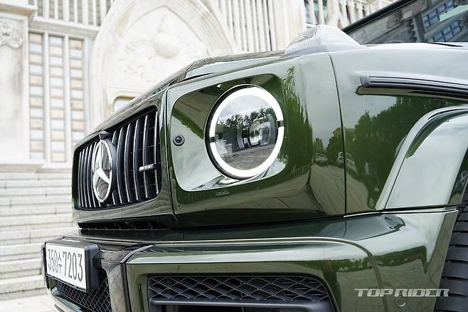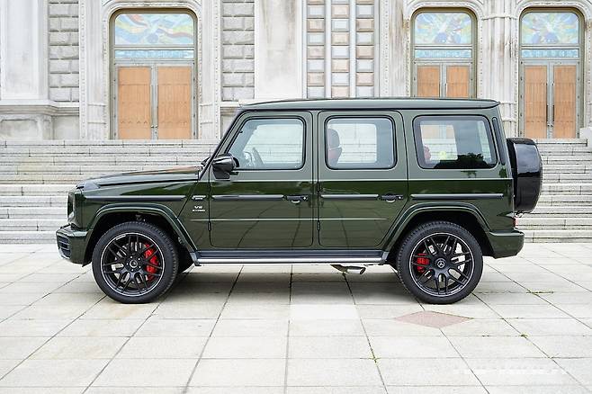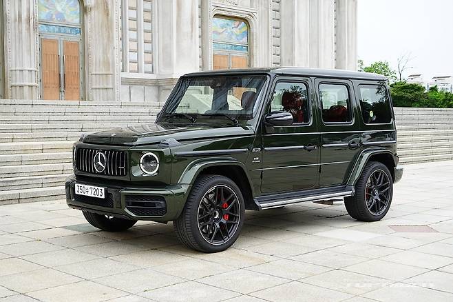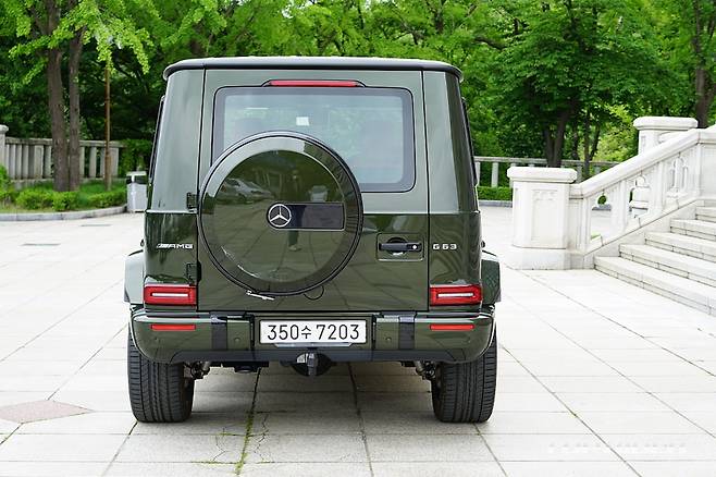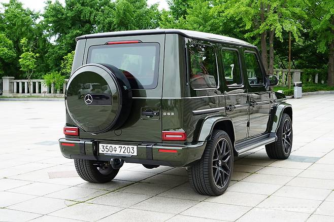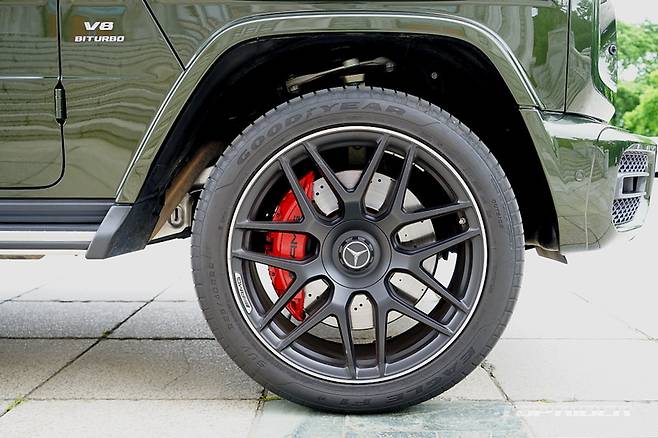 시승차의 외장 컬러는 유료사양인 올리브 메탈릭이다. 군용차 특유의 감성을 강조해 주는 컬러로 개인적으로는 평범한 블랙이나 화려한 화이트 보다 지바겐의 매력을 높여준다. 여기에 22인치 AMG 크로스 스포크 단조 휠은 G63 에디션 아이템으로 분위기를 완성한다.