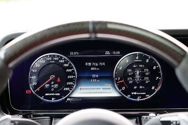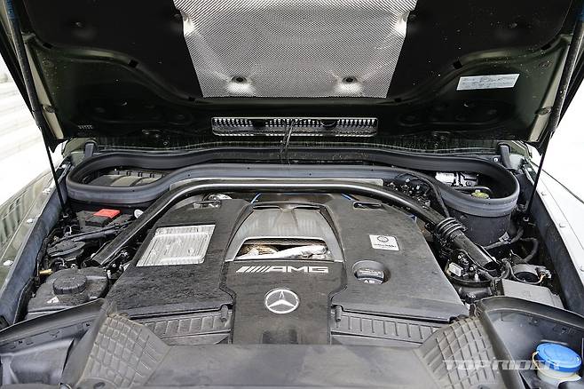 4.0 V8 바이터보 엔진은 AMG 최상위 모델에만 허락되는 엔진으로 2500rpm부터 엄청난 최대토크가 발휘된다. 저회전부터 고회전까지 전 영역에서 여유로운 출력으로 커다란 차체를 경쾌하게 움직인다. 특히 풀가속시 발휘되는 폭발적인 힘은 사륜으로 겨우 감당한다.