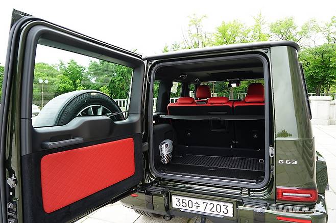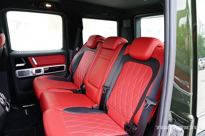 시승차의 외장 컬러는 유료사양인 올리브 메탈릭이다. 군용차 특유의 감성을 강조해 주는 컬러로 개인적으로는 평범한 블랙이나 화려한 화이트 보다 지바겐의 매력을 높여준다. 여기에 22인치 AMG 크로스 스포크 단조 휠은 G63 에디션 아이템으로 분위기를 완성한다.