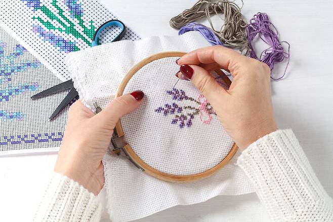 자수는 옷감이나 헝겊에 색실로 그림, 무늬, 글자를 수놓는 취미다. 기계로도 자수가 가능하지만 손맛을 즐기려면 역시 직접 만드는 편이 좋겠다. 자수 중에서도 십자수가 대중적인데 열십자(+) 형태로 수를 놓는 기법이다. 일반적인 천이 아니라 ‘아이다’라는 전용 천에 십자수 전용 바늘을 사용한다. 십자수가 너무 어렵다면 스킬 자수도 괜찮다. 그물코에 털실을 꿰는 방식으로 방법이 간단해서 초등학교 특별 활동 시간에 배우는 경우도 많다.