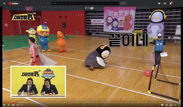 여기서 펭수는 뽀로로, 뿡뿡이와 함께 여러 체육 종목을 마스터했는데, 본질적으로는 콩트나 패러디 콘텐츠가 되며 인터넷에서 화제가 됐어요. 물론 21세기 캐릭터답게 펭수는 ‘자이언트 펭TV’라는 유튜브 채널도 운영하고 있어요.