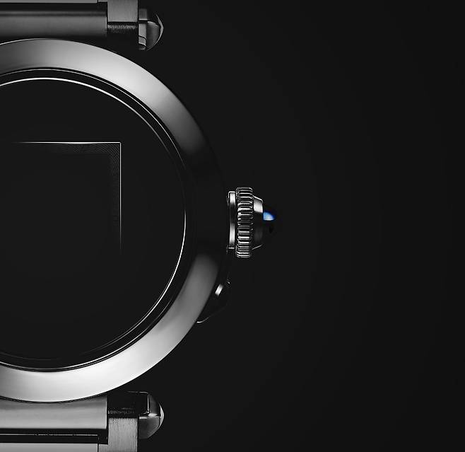 오래 기다리셨습니다. 이제 이번 컬럼의 주인공이 등장했습니다! 2020년 새롭게 리뉴얼 론칭한 파샤 드 까르띠에(Pasha de Cartier) 역시 루이 까르띠에 시절부터 메종이 천착해온 ‘쉐입, 실루엣, 디테일’ 3박자의 개성적인 앙상블을 보여줍니다. 특히 디테일을 가만 살펴보면 까르띠에의 어느 워치 컬렉션과도 다른 것을 알 수 있습니다. 짧은 체인으로 연결한 스크류-다운 크라운 커버와 끌루 드 파리 모티프의 러그 장식, 4개의 오버사이즈 아라비아 숫자 인덱스와 같은 특징들은 전통적인 까르띠에 시계의 공식들을 조금씩 빗겨가는 이단아적인 면모를 드러냅니다.