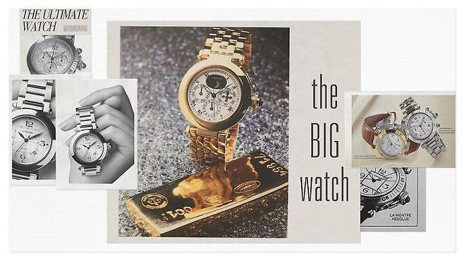 컬렉션은 더욱 풍성해져 1998년에는 32mm 여성용 주얼리 워치까지 등장하게 됩니다. 베젤에 일렬로 다이아몬드를 세팅하고 탈착이 가능한 그리드 장식까지 추가해 파샤의 기원이 되는 오리지널 디자인에 오마쥬를 보냈습니다.