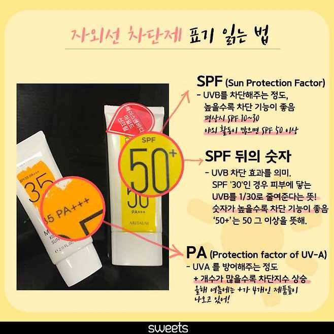 선케어 제품을 보면 SPF, PA 가 적혀있어.