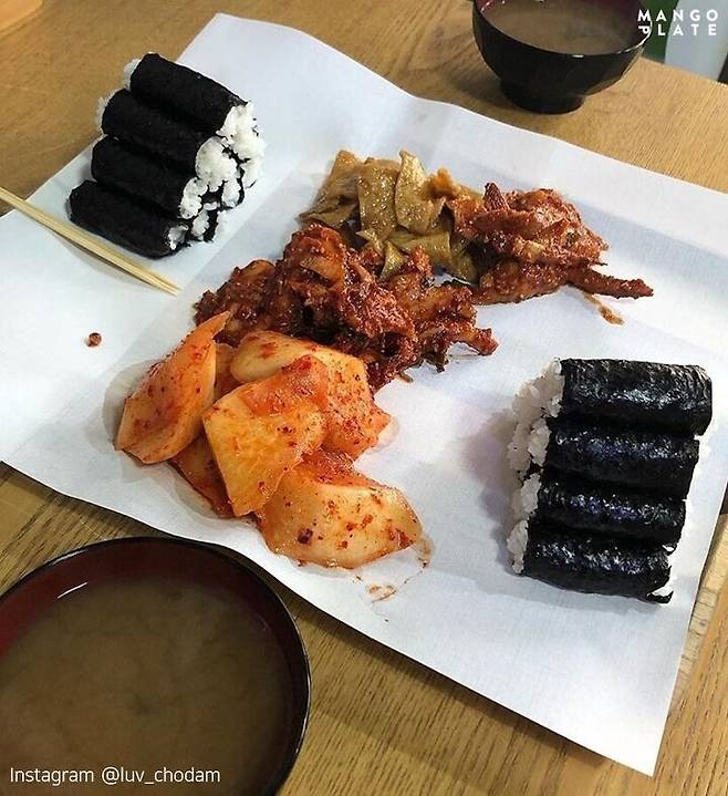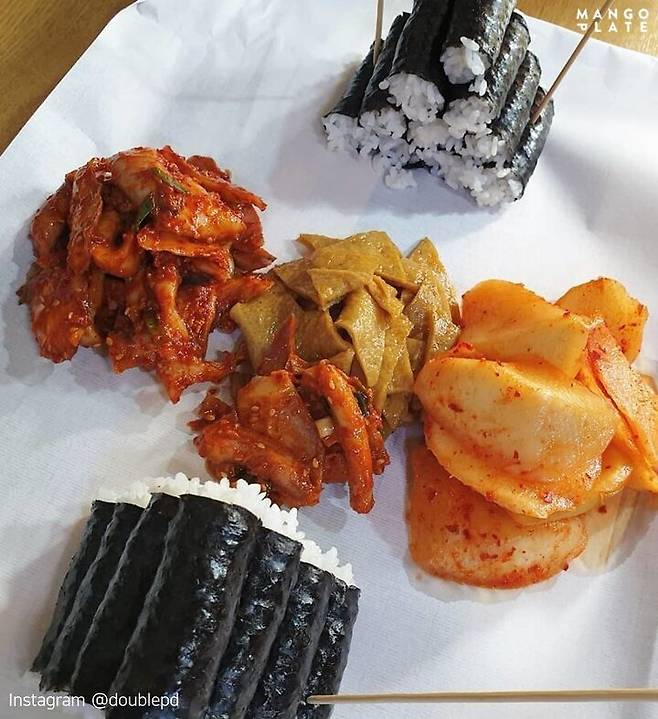 마약튀김김밥과 조금은 특별한 계란말이 김밥이 맛있기로 입소문 난 곳이에요. 김밥 안에 튀김가루가 들어가 바삭바삭한 식감과 튀김의 고소함이 인상적인데요. 속이 느끼해질 때쯤 쫄면을 한입 먹으면 느끼함이 싸악 사라져요! 또한 계란말이 김밥은 김밥 속에 계란말이가 통으로 들어가 한층 더 부드러운 맛을 자랑해요.