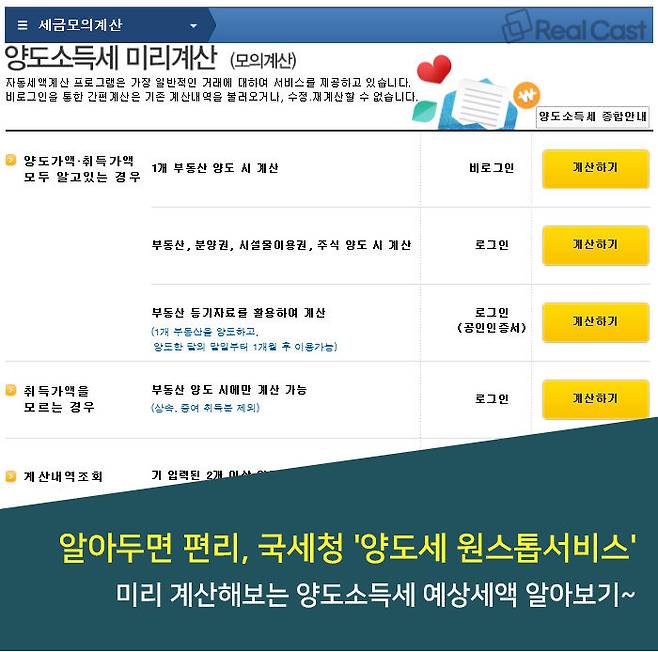 양도소득세 미리계산(모의계산)’ 서비스는