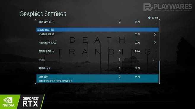데스 스트랜딩의 그래픽 옵션은 비교적 단순한 편에 속하며, 프리셋이라 할 수 있는 "그래픽 품질" 항목을 제공하고 있습니다.