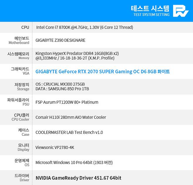 어쨌든, 선택은 게이머 스스로의 판단에 맡긴다는 문자 그대로의 뜻으로 게임 소개를 마치고 GIGABYTE GeForce RTX 2070 SUPER Gaming OC D6 8GB 화이트 그래픽 카드를 활용하여 벤치마크 및 DLSS 2.0, Fidelity CAS 테스트 등을 진행해보도록 하겠습니다.