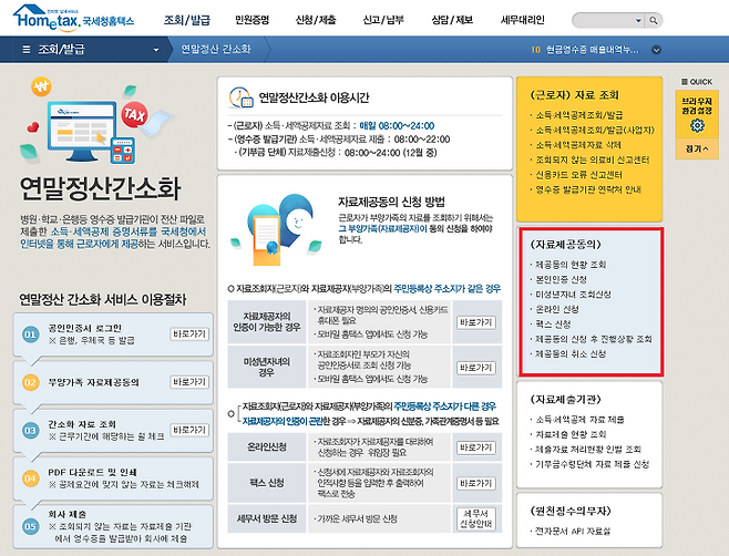 - 국세청 홈택스 > 신청/제출 > 연말정산간소화 > 자료제공동의 신청