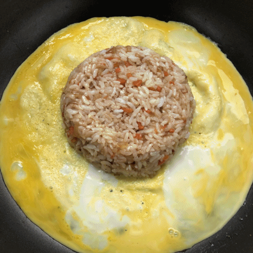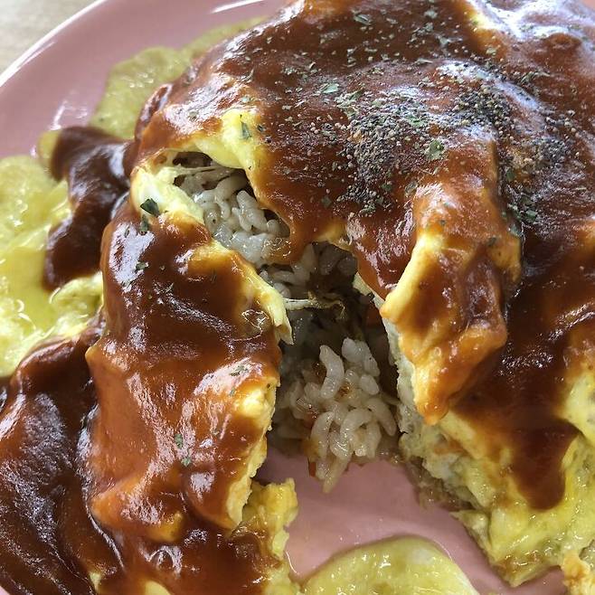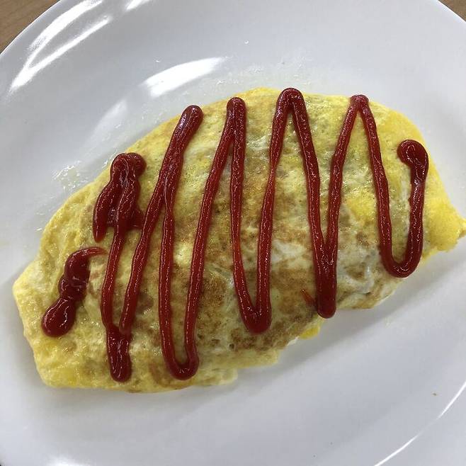 밥 위에 덮어줌ㅋㅋㅋㅋㅋㅋㅋㅋㅋ이 오므라이스는 달걀을 덜 익히는 게 포인트!