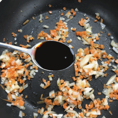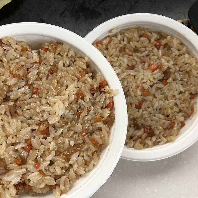식용유를 두르고 잘게 썬 양파와 당근을 넣고 볶은 후 간장 2, 맛술 4, 후추를 넣고 편의밥을 투하해 잘 볶아주면?
