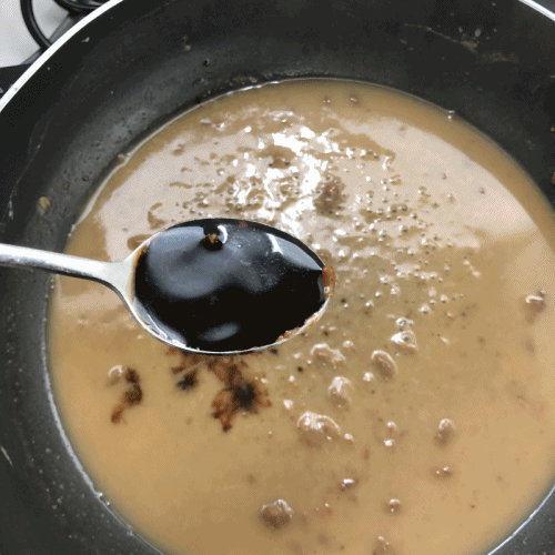 만든 루에 물 한 컵, 설탕 1½, 간장 2, 케챱 2, 쇠고기 다시다 ⅓, 식초 1큰술과 후추를 톡톡 뿌리고 살짝 끓여주면