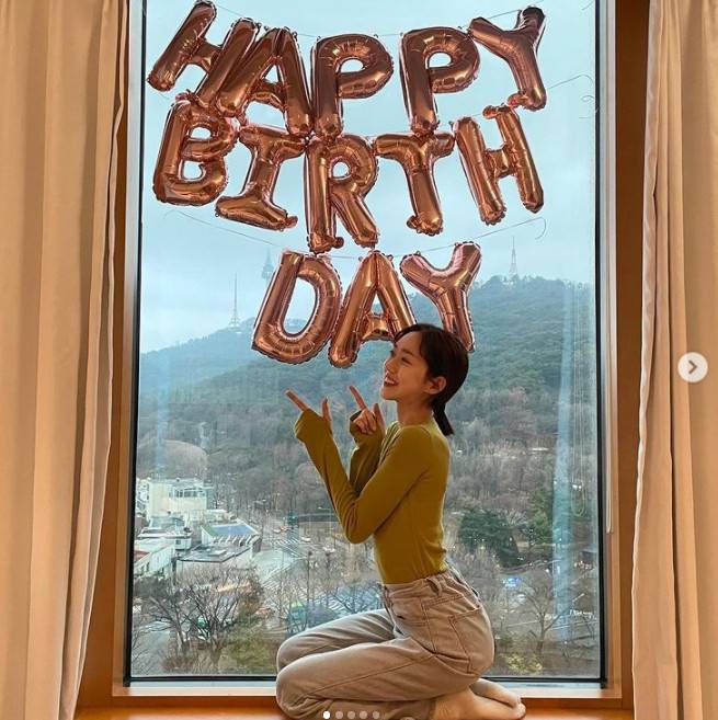 사진 속 한지현은 남산타워가 한눈에 들어오는 호텔에서 생일 파티를 하는 모습. 풍선으로 꾸며진 창문을 등지고 여러 포즈를 짓고 있는 한지현의 얼굴에 웃음꽃이 가득하다.