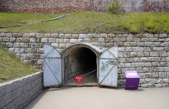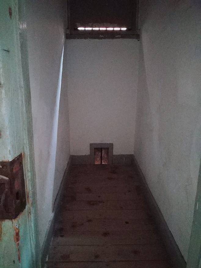 사형장은 촬영 금지구역이다(아래 사진은 서대문형무소역사관 홈페이지에 공개된 사진임). 안을 들여다보니 교수형에 쓰이는 매듭 줄과 나무의자가 있고, 레버를 당기면 의자 밑 마룻바닥이 아래로 열리도록 되어 있다. 섬뜩하다. 건물 뒤쪽으로는 지하실(시신 수습공간)로 이어지는 돌계단이 노출돼 있다. 사형장 담장 뒤에는 사형 집행 후 시신을 형무소 밖으로 내보내기 위해 일제가 설치한 시구문이 남아 있다. 몸에 고문 흔적이 심하거나 사형된 사실이 알려지면 사회적 파장이 예상되는 인물일 경우, 시신을 인도받을 유족이 없는 경우에 이 터널을 통해 내보냈다고 한다.