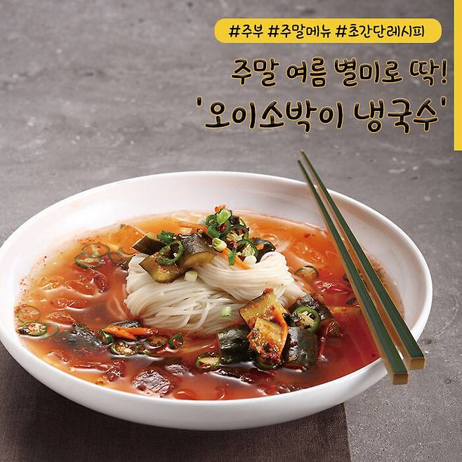 ⑦ 냉장고에서 냉국을 꺼내 얼음, 청양고추를 넣 은 후 쪽파를 뿌려서 완성한다.