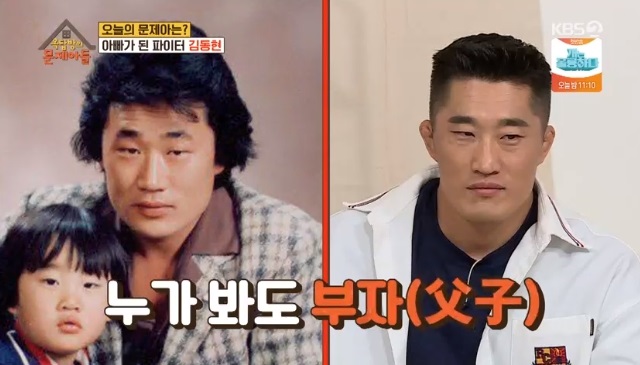 KBS 2TV ‘옥탑방의 문제아들’에서 김동현은 가족사진을 공개했습니다. MC 정형돈은 “동현씨 아버님이... 환생한 줄 알았다”며 김동현이 부친과도 똑 닮았다고 말했습니다.