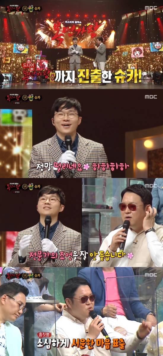 이후 김성주는 "슈카 씨가 '복면가왕'까지 진출했다. 소감이 어떠냐"라며 물었고, 슈카는 "걱정을 많이 했다. 정말 떨린다"라며 털어놨다.