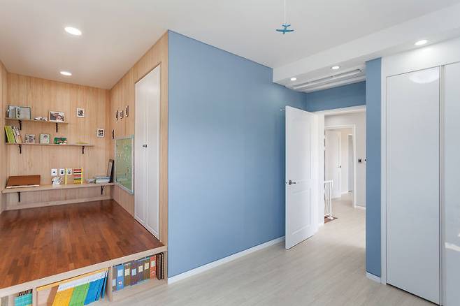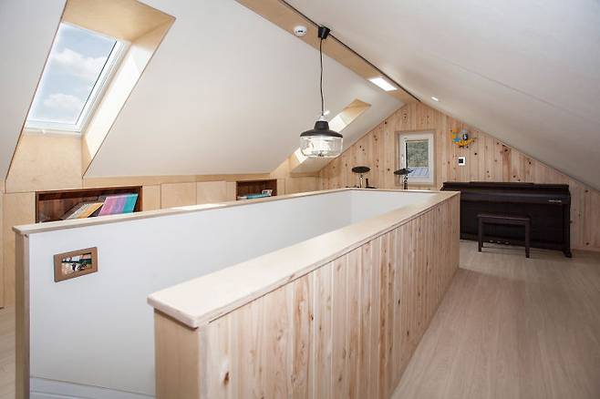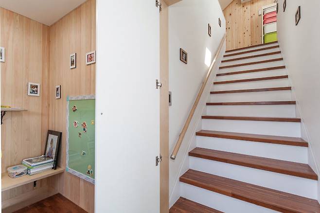 “거실과 가족실보다 아이 방 한쪽에 걸터앉기 편한 높이로 만든 공부방과 다락에서 아이와 함께 지내는 편이에요. 아파트에서는 상상할 수 없는 공간이라 그런지 아이가 무척 좋아하고요. 아이 방의 상부에만 다락이 있어서인지, 차음이 잘되어서인지 아이가 친구들을 데려와 다락에서 맘껏 뛰어도 다른 공간에서는 그것을 느낄 수 없어요. 다락에서 노는 아이를 볼 때마다 아파트에서 탈출하기를 잘했다는 생각이 들어요. 우리 아이에게 다락은 안전한 놀이터이자, 새록새록 추억거리가 쌓이는 보물창고 같은 곳이에요.”
