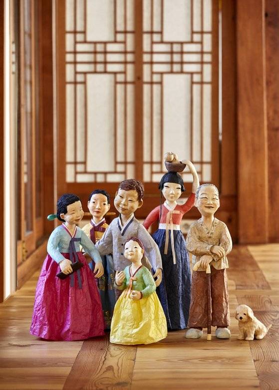 처음 시작한 분들이 인형을 만들 때 리얼한 표현보다는 동글동글하고 조금 소박하며 유머 있고 개구쟁이 같은 면을 표현했어서 닥종이 하면 귀엽고 동글동글한 매력이 있죠. 저희 엄마를 표현한 작품엔 눈동자가 있는데요. 일반적인 인형을 만들 때는 눈동자를 잘 안 만들어요. 눈동자를 넣으면 인상이 강해지거든요. 종이 한 장 더 붙이는 거에 따라 표정도 확 달라져 내가 표현하고 싶은 감정을 그대로 표현할 수가 있죠. 만드는 작가 입장에서는 그런 오묘한 차이에서 굉장한 매력이 있어요. 사람이 가진 감정을 표현할 수 있는 조형물이라는 게 매력적이죠. 다양한 용도로 쓸 수도 있는데 예를 들면 전에 제가 동시를 인형으로 표현해 시와 함께 전시한 적이 있어요. 그렇게 문학을 표현할 수도 있고, 디오라마 형태로 만들 수도 있고요. 요즘 외국인에게 설명할 때는 페이퍼 피규어라고도 하죠.