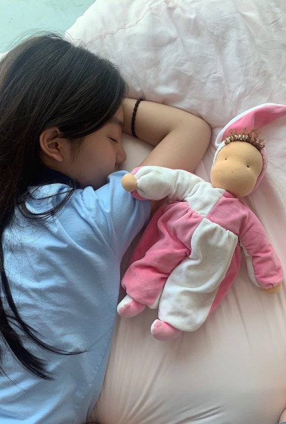 엄마가 저를 임신했을 때 태교로 만드신 발도르프 인형이 있어요. 열 달 동안 저와 함께 하나하나 디자인하고 재단해서 만든 세상에 하나뿐인 인형이죠. 엄마가 독일에서 발도르프 교육을 배우고, 딸인 제게 꼭 만들어 주고 싶어서 만드셨다고 해요. 그중 빨간 모자를 쓴 인형은 신생아 때 저랑 크기가 똑같죠. 태어날 때부터 열네 살이 된 지금까지도 제 침대에서 늘 저와 함께 한답니다. 외동인 저에게는 이 인형이 제 동생 같아요. 나중에 커서 결혼하고 아이를 낳으면 제 아이에게도 꼭 보여줄 거예요. 김리나