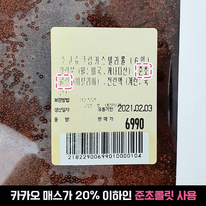 '초코 슈크림 카스테라 롤'이에요.