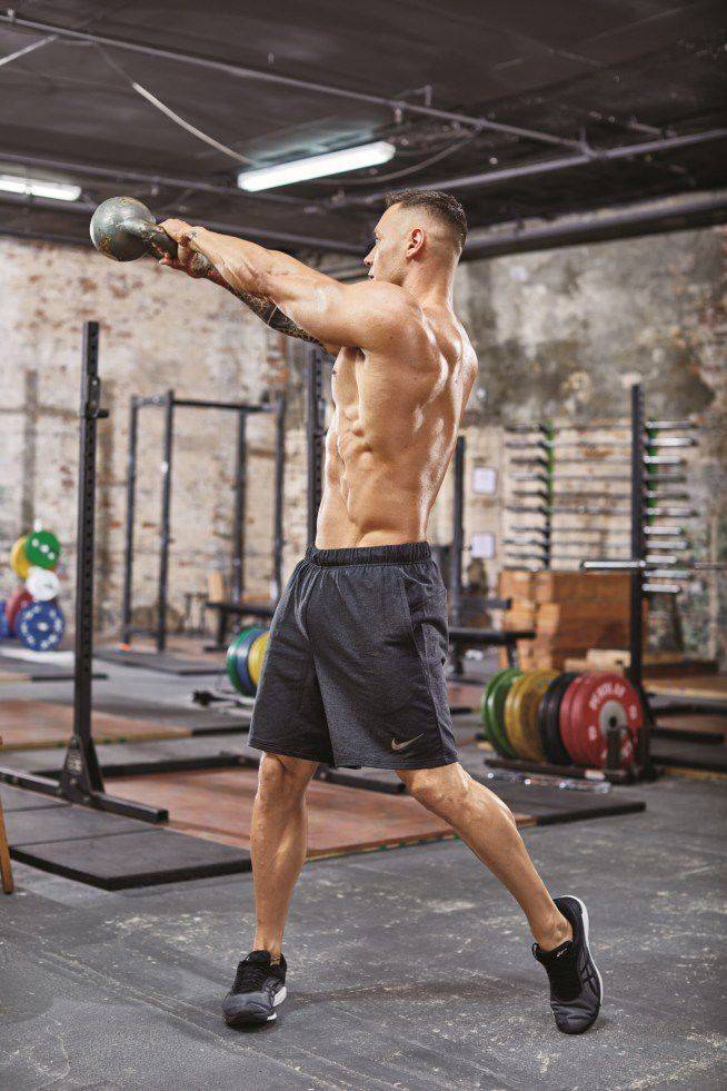 하는 방법: 케틀벨의 손잡이를 잡아 엉덩이 한쪽 옆에 두자. 반대쪽으로 몸을 돌리면서, 뒤쪽에 놓인 발을 기준점으로 잡고 벨을 반대쪽 어깨를 향해 휘둘러 올리자. 양쪽을 번갈아 반복한다.