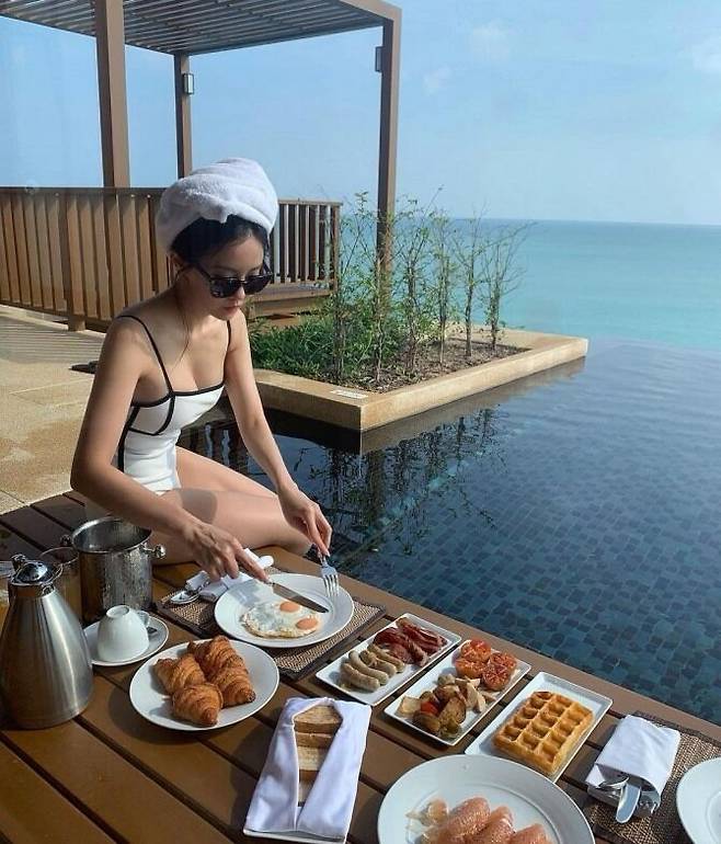 효민은 지난 5일에도 자신의 인스타그램에 과거 야외 수영장에서 찍은 블랙 비키니룩을 공유하며 글레머러스한 몸매를 과시했다.