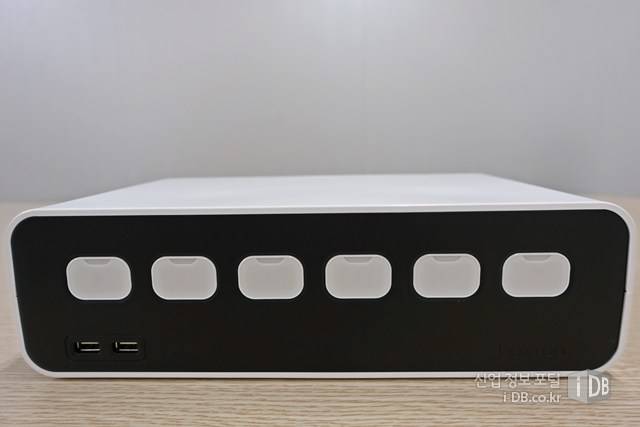 외관은 통신사 셋톱박스를 연상시키는 유려한 직사각형 형태다. 제품 전면에는 각각의 전원 공급을 컨트롤할 수 있는 램프형 스위치가 있다. 2개의 USB 포트와 5개의 콘센트가 있다. 제품 제일 오른쪽에 있는 스위치가 멀티탭의 모든 전원을 켜고 끌 수 있는 역할을 한다.