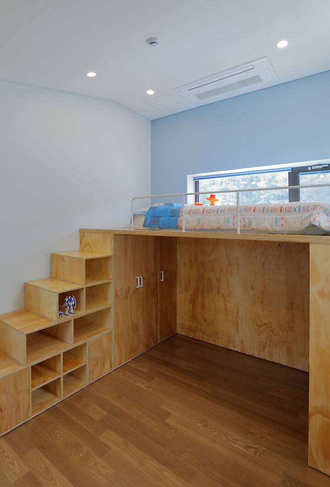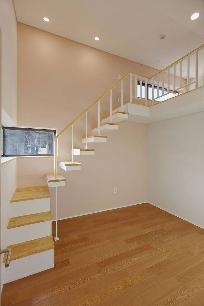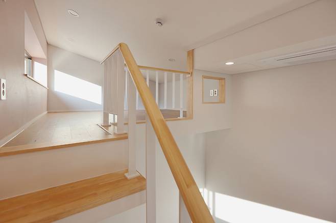 2층의 자녀방과 그사이의 테라스는 이웃한 증산을 바라볼 수 있는 방향으로 시선을 열어주었다. 이렇게 집을 이루는 각 실은 중앙의 마당과 추가로 설치된 작은 마당들과 면해 항상 자연과 햇빛을 가득 담고 있다.