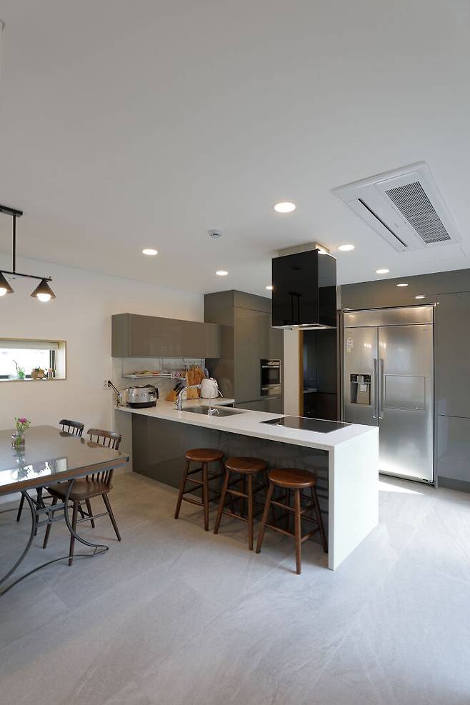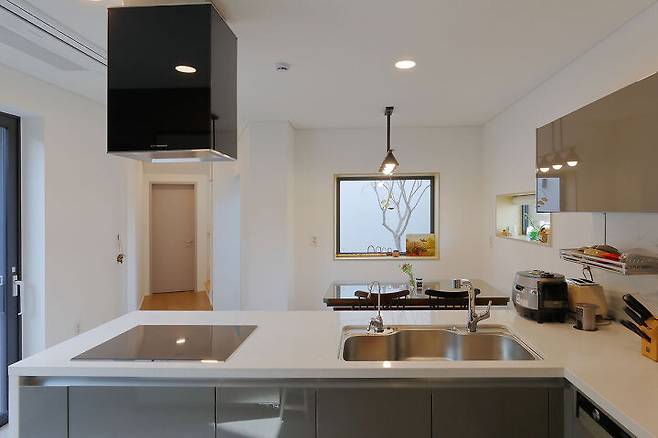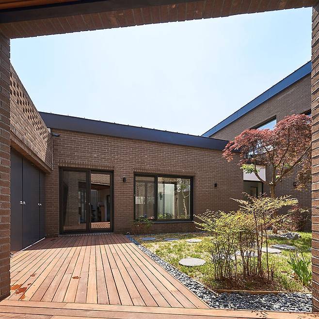 이곳에 부부는 오랜 기간의 아파트 생활을 마무리하고 주변 대지에 지어진 집들과는 사뭇 다른 모습으로 가족을 위한 단독주택을 지었다.