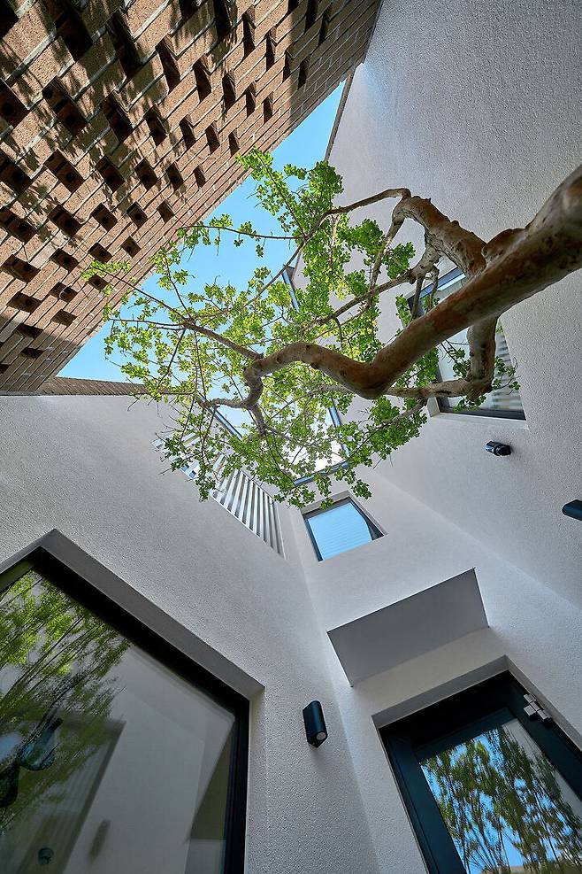 남쪽 동의 지붕 높이와 경사도를 이용하여 남쪽의 이웃집에서는 집의 내부가 보이지 않지만, 마당으로 최대한의 채광을 끌어들일 수 있도록 하였다.