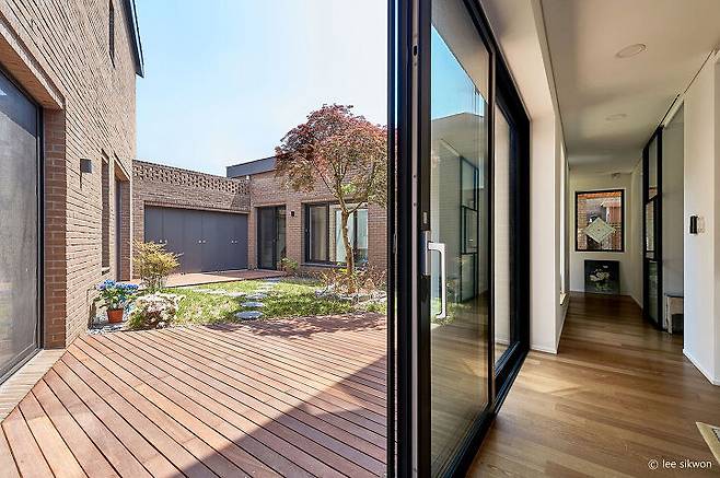 하담집은 단순히 중정만을 가진 집이 아니다. 중앙의 마당과 추가로 제안된 작은 마당들이 서로 연결되면서 집을 풍성하게 만들어 주는 역할을 한다. 내부에서의 시선은 중정에서 머물지 않고 다른 작은 마당으로 뻗어 나가게 된다. 그렇기에 가족들은 각각의 위치에서 서로 다른 풍경들을 만나게 되어 항상 공간의 풍요로움을 느끼게 될 것이다.