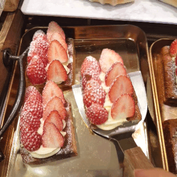 오! 예상과는 다른 식감이었어요. 겉부분은 약간 바삭한 듯 했지만 입에 넣으니 너무 부드러워서 살살 녹았어요. 크림도 느끼하지 않고 빵과 잘 어울렸고요. 중간중간 씹히는 딸기가 상큼 달달해서 빵의 풍미를 높여주었어요! 첫 번째 디저트 부터 느낌이 좋은데요?