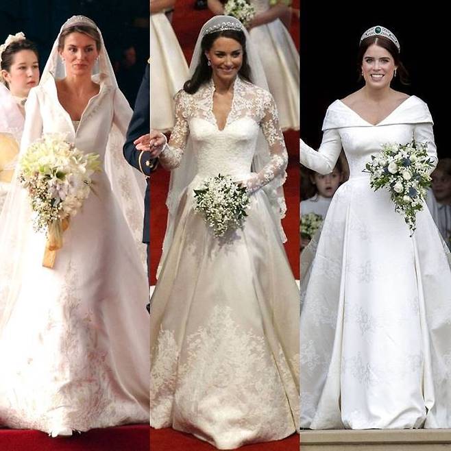 케이트 미들턴, 메건 마클, 고 다이애나 왕세자비, 엘리자베스 2세 여왕 등 왕실 여인들이 입었던 역대 가장 비싼 웨딩 드레스 7를 소개한다.