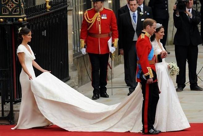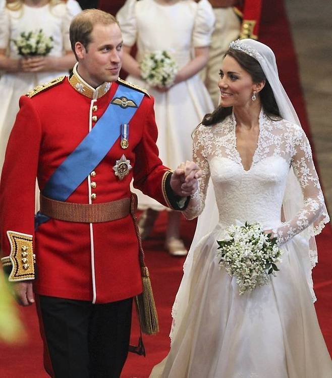 2위는 영국 왕실의 맏며느리 케이트 미들턴이 2011년 윌리엄 왕자와 결혼하기 위해 입었던 웨딩 드레스로, 드레스 비용 25만 파운드(약 3억 8천만 원)는 그녀의 친정 부모 캐롤과 마이클 미들턴 부부가 지불했다.