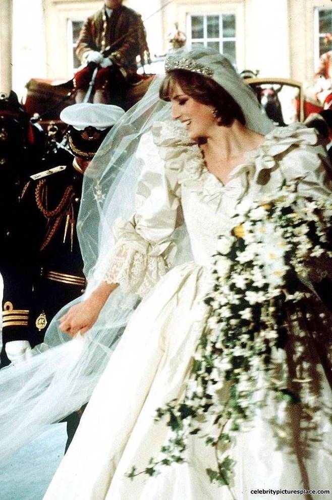 웨일스 출신의 영국 디자이너 데이비드 에마누엘과 그의 당시 부인이었던 엘리자베스가 디자인한 드레스는 거대한 러프 소매가 달린 그야말로 동화책에나 나올법한 공주풍의 로맨틱 드레스였다.