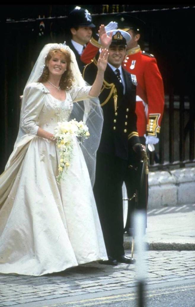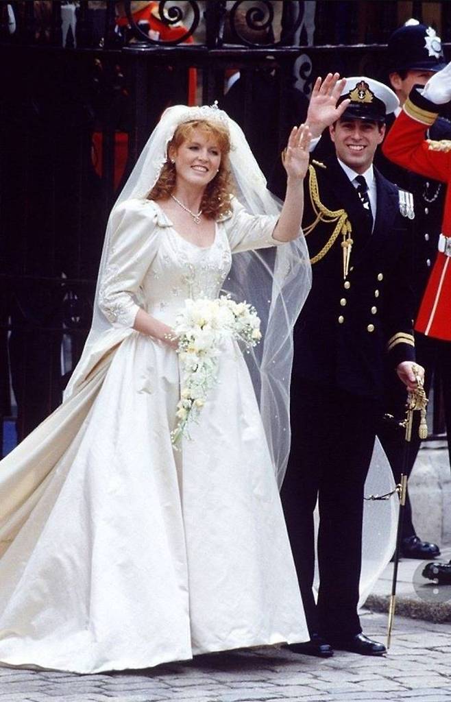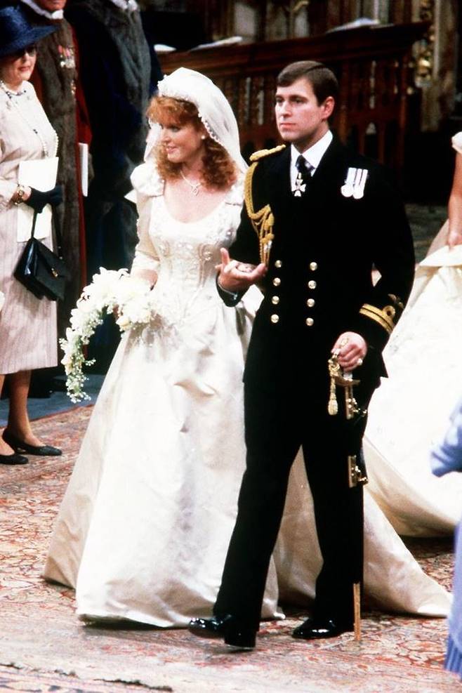 사라 퍼거슨은 1986년 엘리자베스 2세 여왕의 둘째 아들인 앤드류 왕자와 결혼할 때 아이보리 색의 뒤셰스 새틴(견이나 레이온으로 만든, 광택이 도는 단색의 수자 직물)으로 만든 웨딩 드레스를 선택했는데, 가격은 3만 5천 파운드(약 5천 3백 만원)으로 알려졌다.