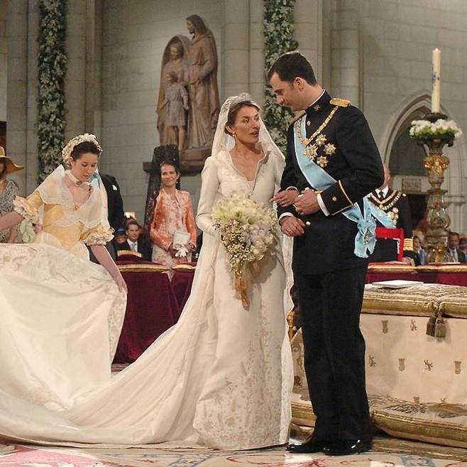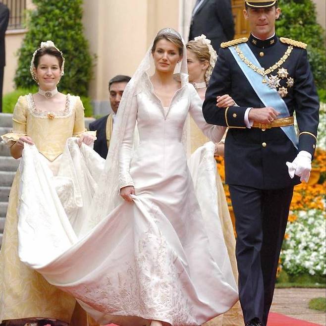 스페인의 레티지아 왕비가 2004년 펠리페 국왕과의의 결혼식에 입었던 600만 파운드(약 91억6천 만원)의 웨딩 드레스가 순위에서 1위를 차지했다.