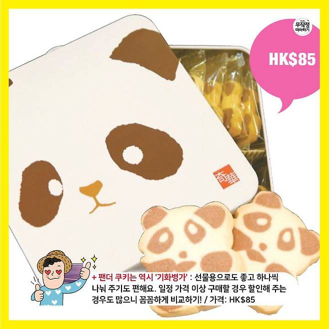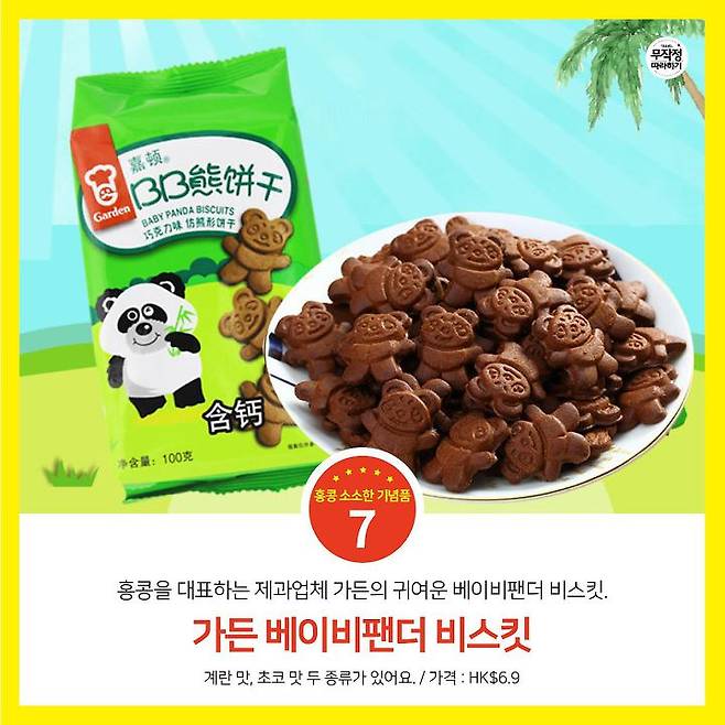 홍콩을 대표하는 제과업체 가든의 귀여운 베이비팬더 비스킷. 계란 맛, 초코 맛 두 종류가 있어요.