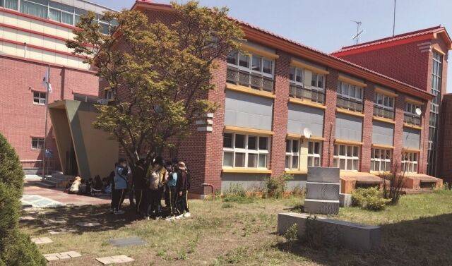 널찍한 운동장 앞 정원 풀밭과 화단에서는 학생 수십 명이 예닐곱 명씩 서너 개 그룹으로 쪼그려 앉아 뭔가를 들여다보고 있었는데요. 숲해설 전문가들이 안내하는 민들레·벚나무·단풍나무 등의 줄기와 잎을 관찰하는 숲생태 학습입니다. 이 학교는 2021년 4월 정부가 주관하는 이달의 한국판 뉴딜상을 받았어요. 교육부가 주축인 ‘학교공간혁신사업’ 대상에 선정돼 2020년 6학년 교실(총 3개 반)을 ‘그린스마트 미래학교’로 바꿨죠.