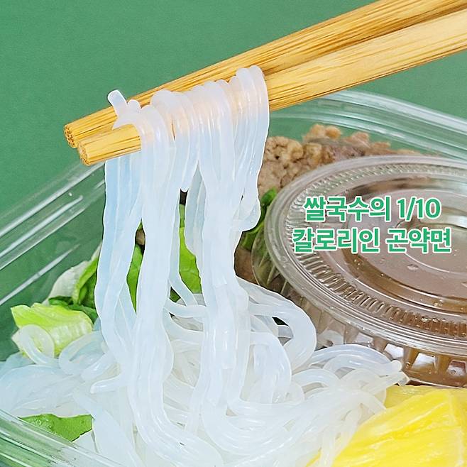 면 탱글탱글한 것 보이세요? 쌀면이나 밀가루면에서 나올 수 없는 쫀득하고 탱탱한 식감이에요. 게다가 칼로리도 쌀국수 면의 10분의 1로 아주 착하죠. 사실 에디터는 일주일에 2~3회는 면을 먹을 정도로 면부심이 있는 편인데요. 이렇게 면을 대체할 음식을 그동안 왜 생각 못 했는지 아쉬워요. 특히 곤약은 글로코만난을 원료로 해 수분과 식이섬유가 많아 이물질 흡착과 배설에 도움이 됩니다. 동아대학교 식품영양학과 연구에 따르면 곤약의 글루코만난을 비만 쥐에게 6주간 급여했더니 글루코만난의 첨가 비율이 높아질수록 체중 감소와 대사증후군 개선에 도움이 됐다고 해요.