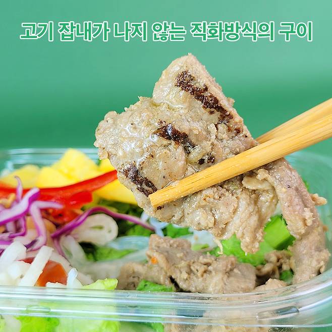 고기 질도 중요하죠. 베트남 음식점에 가면 아쉬웠던 게 고기가 늘 부스러져 있거나 부속고기에 가까운 퀄리티라는 거였어요. 두툼하고 잘 구워진 고기에 야채와 면을 적셔 먹고 싶다고 생각했는데, 프레시코드의 분짜 샐러드는 그 아쉬움을 충족시켜주더라고요. 1.5cm~2cm는 될 것 같은 두꺼운 고기가 들어있어 입안 가득 육즙이 퍼지는 느낌이 만족스러웠어요.