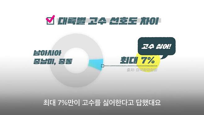 대륙별 고수 선호도 차이 조사를 살펴보면