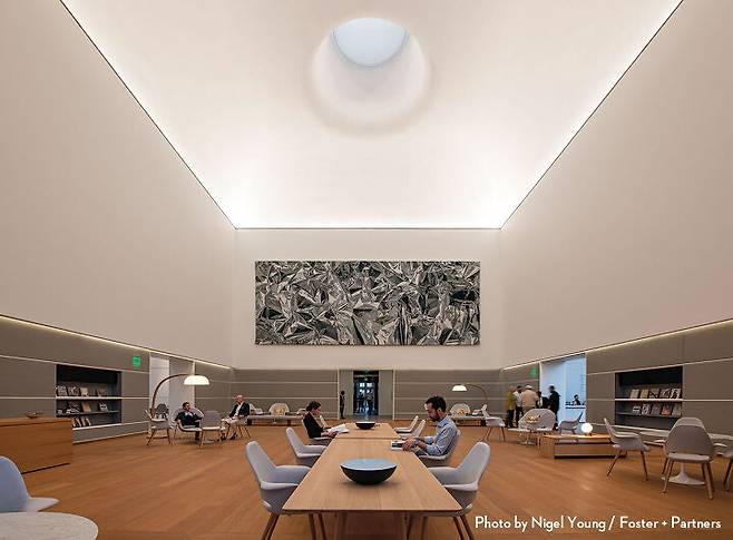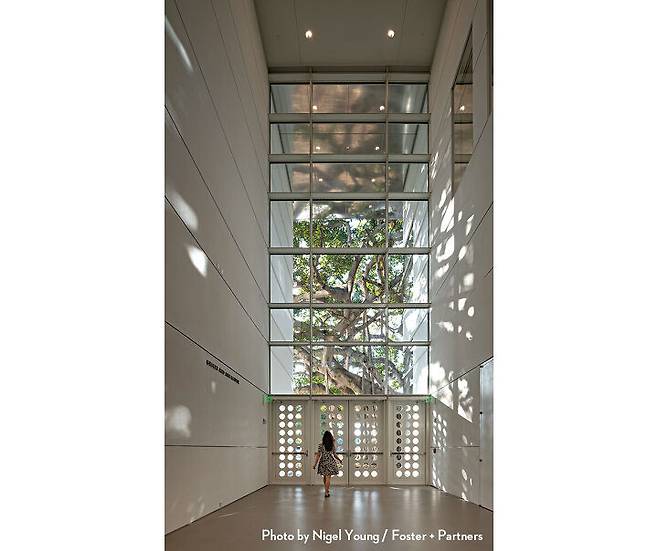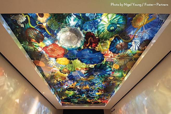 이른바 ‘그랜드 오픈’을 한 노턴 미술관은 노먼 포스터가 설계한 미술관 중 조각 공원이 있는 최초의 미술관이기도 하다. 이곳은 앤터니 곰리, 제니 홀저, 프란츠 베스트, 우고 론디노네, 키스 해링 등의 조각 작품으로 채워져 있다. 노먼 포스터는 그레이트홀이라 부르는 미술관 공용 공간의 모든 가구와 함께 레스토랑의 테이블과 의자, 심지어 냅킨까지 디자인하는 정성을 보였다. 이런 소품은 전시장을 제외하고 모두 각기 다른 회색 톤으로 마감했는데, 이를 두고 몇몇 큐레이터는 노먼 포스터가 소설 <그레이의 50가지 그림자(Fifty Shades of Grey)>를 미술관을 통해 새롭게 정의했다고 말하기도 했다. 물론 단어의 중의성으로 재미를 더한 표현이지만, 미술관에 가보면 말 그대로 회색 톤이 얼마나 다채로운지 알 수 있다.