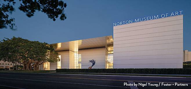 웨스트팜비치 미술계의 구심점 역할은 미술관들이 맡았다. 그중 노턴 미술관(Norton Museum of Art)의 역할이 크다. 노턴 미술관의 역사는 1941년 시카고 철강 사업가이자 아트 컬렉터인 랠프 노턴(Ralph Hubbard Norton, 1875~1953)과 엘리자베스 노턴(Elizabeth Calhoun Norton, 1881~1947) 부부가 은퇴와 동시에 매해 겨울휴가를 보낸 이곳에 내려와 그들의 컬렉션으로 공공 미술관을 열면서 시작됐다. 두 사람은 ‘대중에게 교육과 함께 즐거움을 제공하며 과거의 아름다운 것을 미래를 위해 보전하는 것’을 미술관의 설립 목표로 제시했다. 이것이 후기 아르데코와 네오클래식 양식이 공존하는 이 작은 미술관을 만든 가치인 셈.