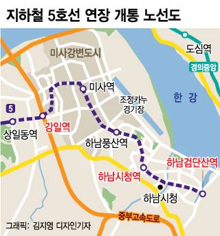 강동구와 경기도 하남시를 잇는 지하철 5호선 연장 개통으로 인근 주민 편의가 크게 증대될 전망이다.