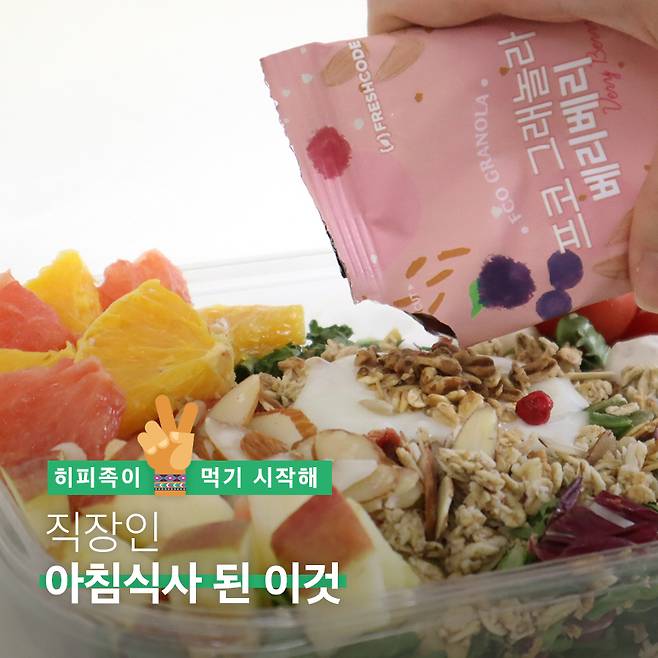 설탕이 과다한 시리얼을 아침으로 먹으면 혈당이 급격하게 높아지는데요. 프레시코드의 그래놀라는 포만감을 주는 단백질과 섬유질이 풍부한 귀리에 첨가물, 보존료 대신 비정제 사탕수수당과 메이플 시럽으로 단맛을 냈어요.