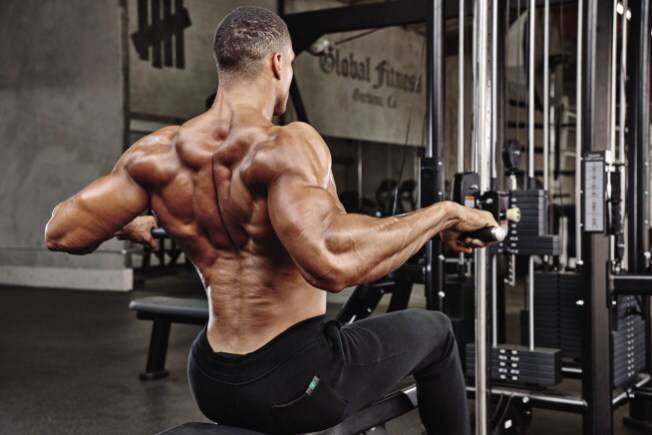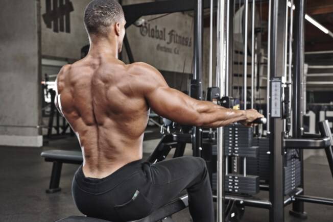 랫 풀다운 봉을 시티드 케이블 로우 도드래에 연결하자. 앉아서 와이드 그립으로 봉을 잡자. 이제 팔꿈치를 굽혀 봉을 가슴 아래까지 가져가자. 이렇게 동작을 수행하면 등 산단과 승모근을 효과적으로 자극할 수 있다.